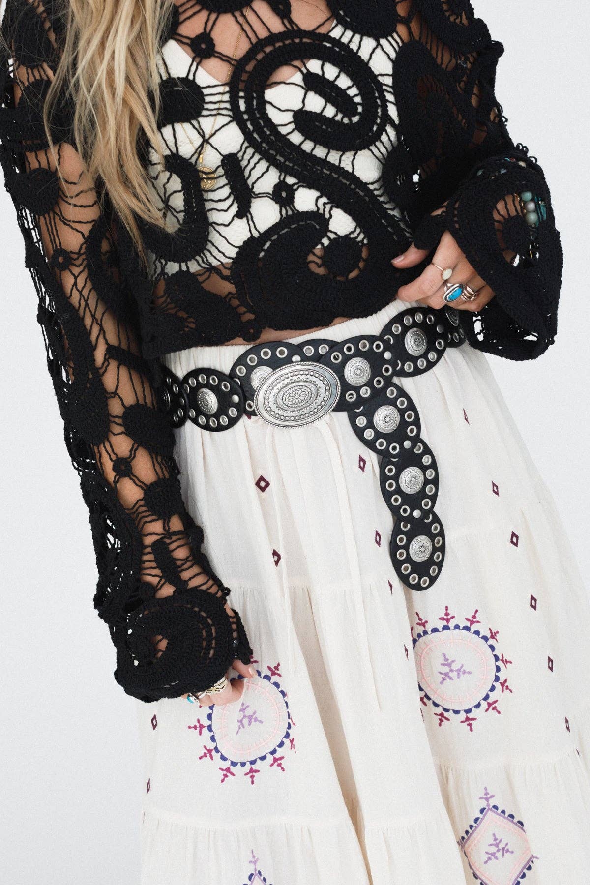 Ceinture ajustable en similicuir à motif en « O » avec motif perlé