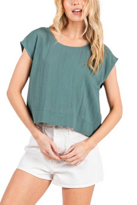 HAUT EN LIN À COL ROND AVEC MANCHES ET OURLET EN MAILLE CE HAUT EN LIN PRÉSENTE DES MANCHES ET UN OURLET EN MAILLE TENDANCE, AJOUTANT UNE TOUCHE DE STYLE UNIQUE À UN DESIGN CLASSIQUE À COL ROND. LE TISSU LÉGER OFFRE RESPIRABILITÉ ET CONFORT, PARFAIT POUR LES TEMPS CHAUDS. ÉLEVEZ VOTRE GARDE-ROBE AVEC CE HAUT À LA FOIS À LA MODE ET POLYVALENT.