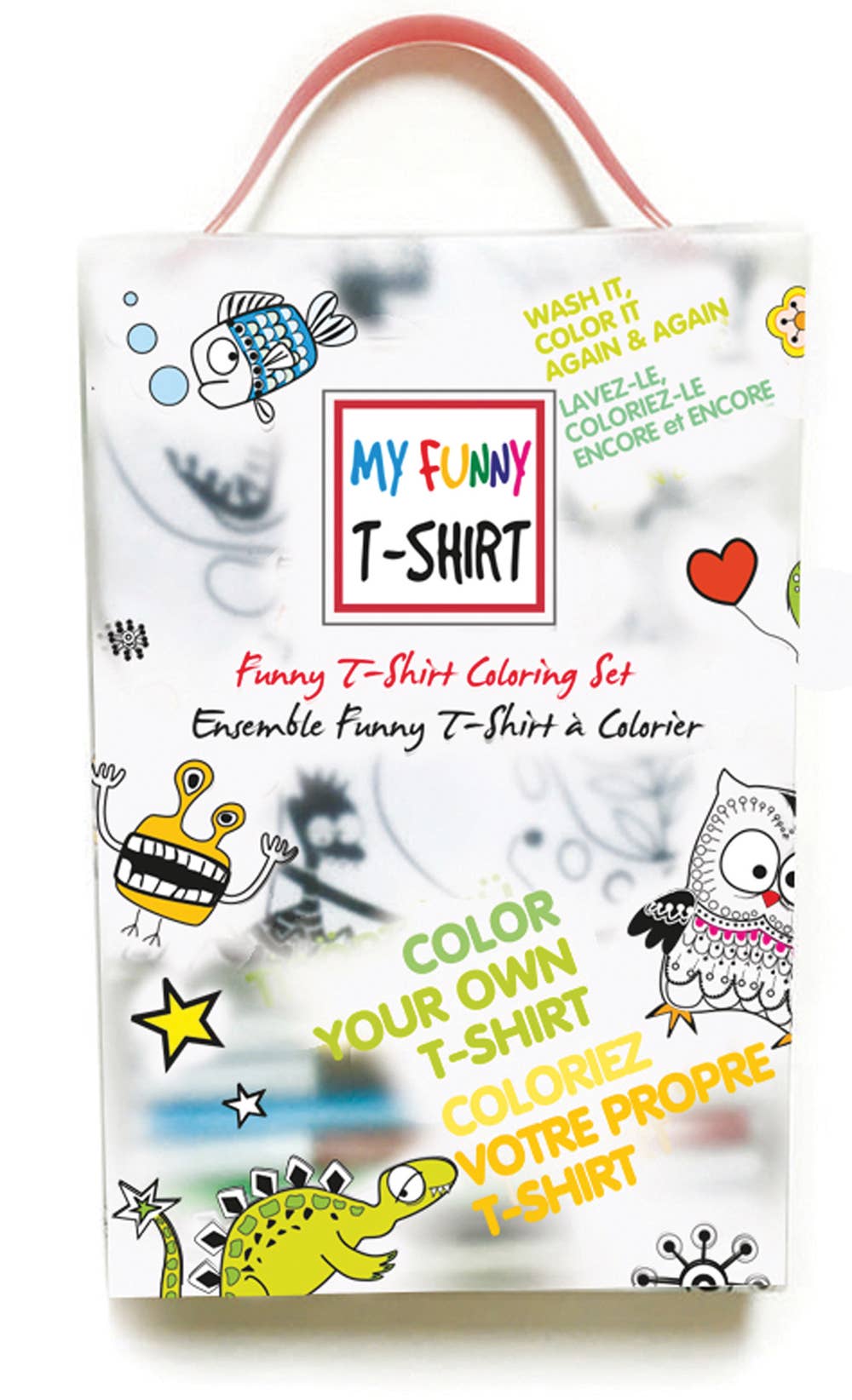 Funny Mat est une housse de table qui peut être utilisée pour des projets d'artisanat tels que dessiner, colorier ou comme tapis de protection pour la peinture, la pâte à modeler et la pâte à modeler ou comme napperon. Les motifs de Funny Mat peuvent être colorés avec des marqueurs lavables à base d'eau. Funny Mat est fabriqué en polypropylène et est recyclable et réutilisable. La taille de chaque tapis est de 33,5 x 48 cm (13,2 pouces x 18,9 pouces). L'ensemble comprend des tapis aux motifs Jurassic et Fish avec 12 marqueurs Giotto de couleurs assorties.