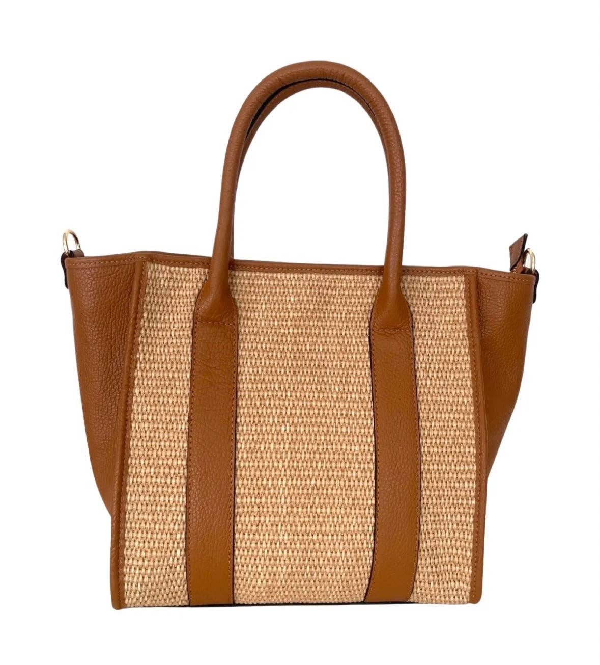 Sac cabas en paille tressée avec poignées en cuir