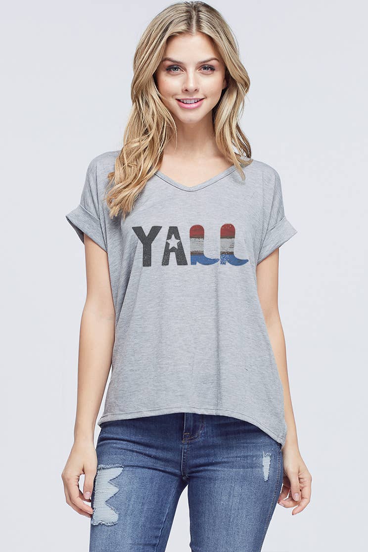 noir et blanc Country Western Y'ALL T-shirt à manches courtes