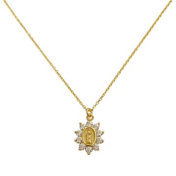 Collier à breloques en forme de saint ajustable de 18 pouces en plaqué or 18 carats avec détail en zircone cubique