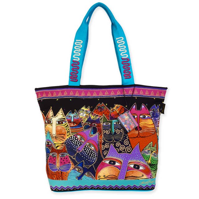Chat, Grand Sac Cabas à Épaule Découpée | LB778 | Nettoyage à la Main Uniquement | Fabriqué en Inde | Taille : 20"x 5"x 14.5"