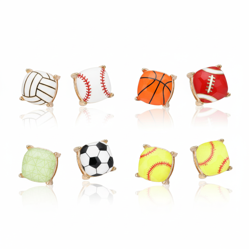 Lot de 3 boucles d'oreilles à tige en forme de boule de sport en émail en vente B2B