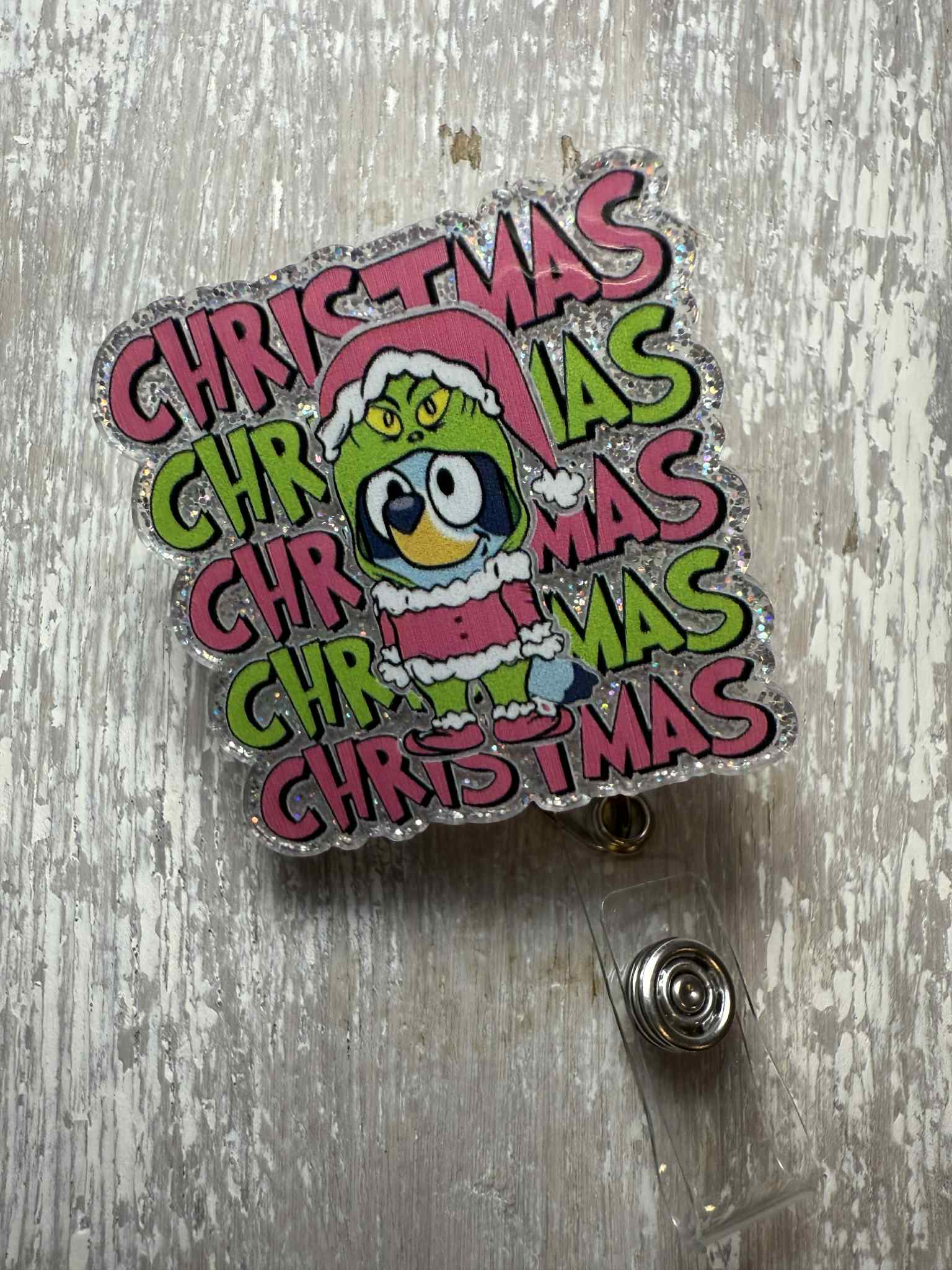 Porte-badge rétractable acrylique "Joyeux et lumineux Noël" en vente B2B