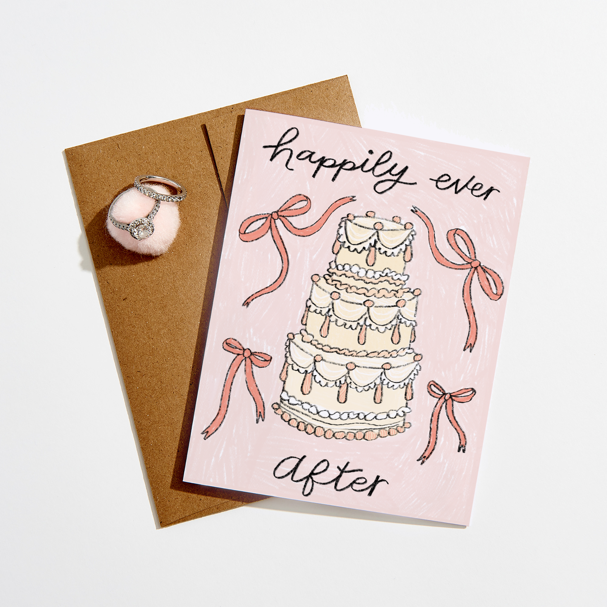 Félicitez les êtres chers nouvellement fiancés ou le couple nouvellement marié dans votre vie ! Les détails illustrés à la main sont magnifiques et intemporels. DÉTAILS : * Carte pliée format A2 (4,25 x 5,5 pouces) imprimée professionnellement à Nashville, TN * Imprimée sur du papier cartonné blanc de 100 lb, semi-recyclé * Livrée avec une enveloppe kraft A2 assortie * Emballée avec soin dans une pochette protectrice en cellophane * Intérieur vierge pour votre message personnel * Détails du produit et logo de la marque au dos de la carte * Conçu par Ava Wolf