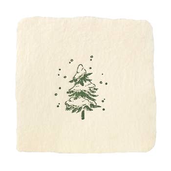 Des pins esquissés brillent en feuille d'or sur cette carte - parfaite comme note festive de vacances ou comme clin d'œil aux montagnes à tout moment de l'année. Papier fait main avec une illustration en feuille d'or d'une forêt de pins. Carte pliée : Environ 3 3/4 x 5 1/4 pouces pliée avec l'intérieur vierge. Le dos est imprimé en typographie avec une petite note incluant des informations sur les teintures naturelles utilisées pour colorer chaque pièce unique de papier. Carte de note : Carte en papier fait main avec quatre bords entièrement dentelés. Le recto est imprimé en typographie ; le verso est imprimé en typographie avec une petite note incluant des informations sur les teintures naturelles utilisées pour colorer chaque pièce unique de papier. Pas de pli. Vente en gros uniquement : MOQ simple 6 ; ensemble de quatre MOQ 3