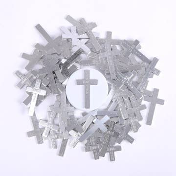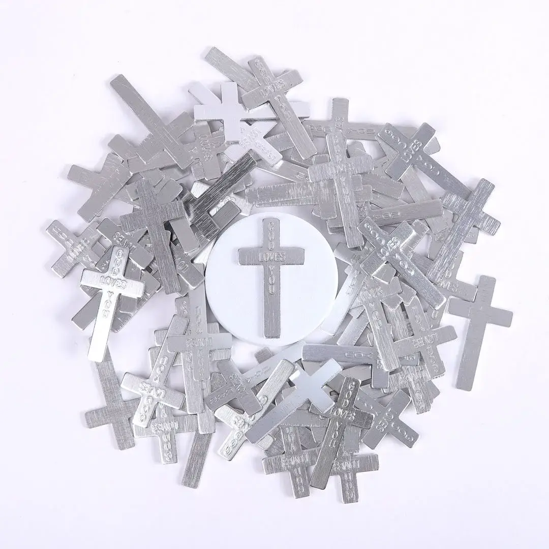 Finition brillante, époxy rouge à paillettes avec colombe descendante et bénédiction de confirmation. Emballé dans un sac en polyéthylène.