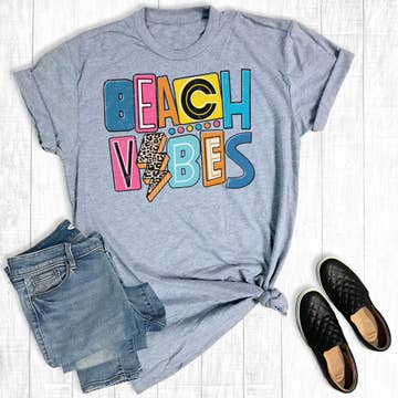 Beach Vibes, t-shirt unisexe à manches courtes et col rond à imprimé graphique Fabriqué sur commande