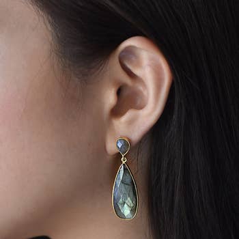 Boucles d'oreilles en or 14 carats avec gouttelettes d'aigue-marine Moss