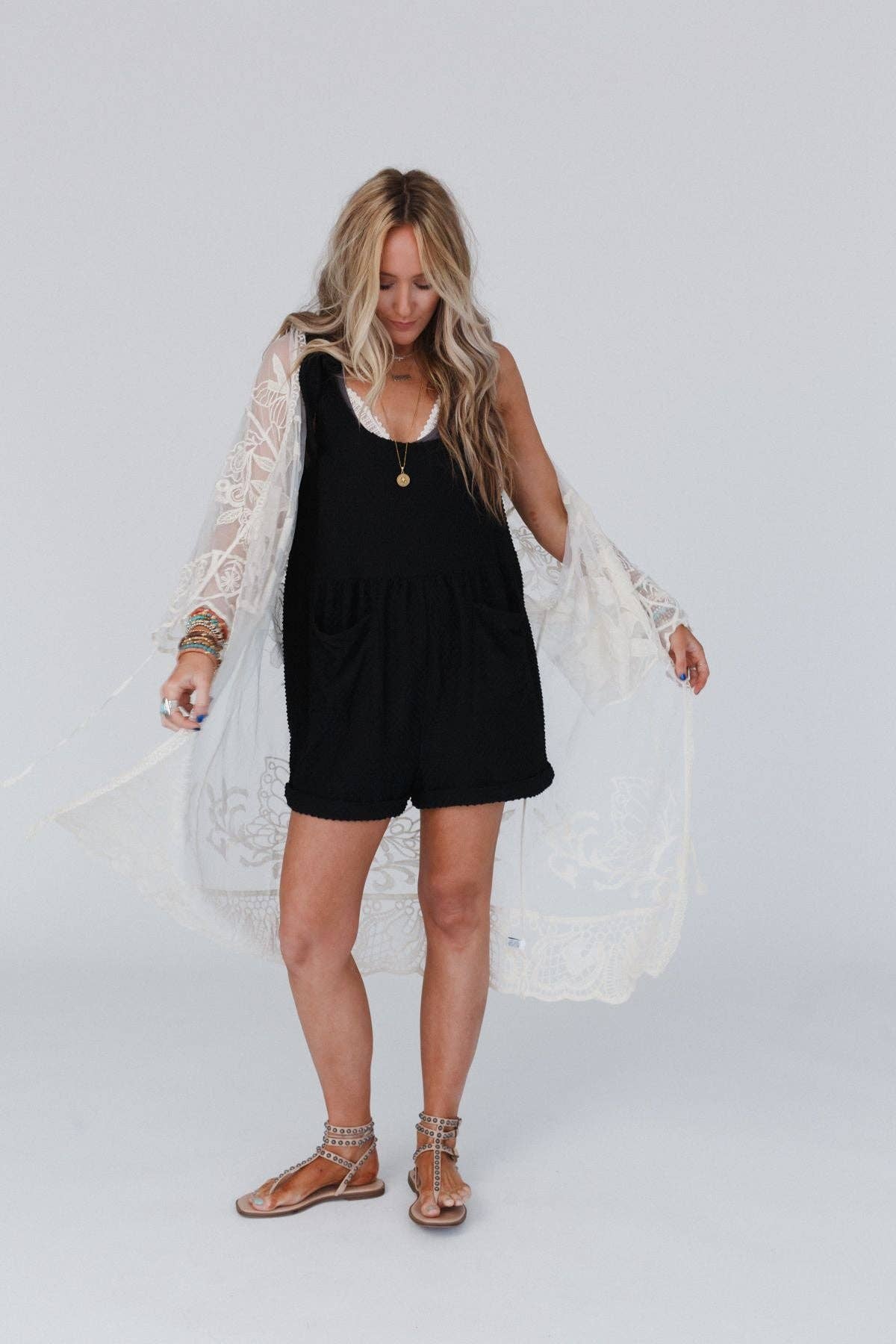 Kimono uni en crochet avec ourlet à franges OYM049 en vente B2B