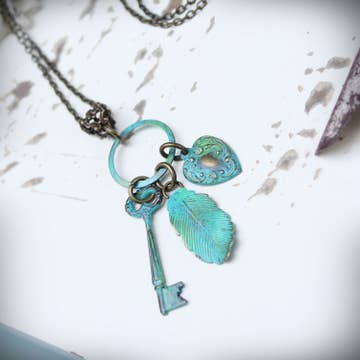 Collier clé en laiton avec turquoise et gland en vente B2B