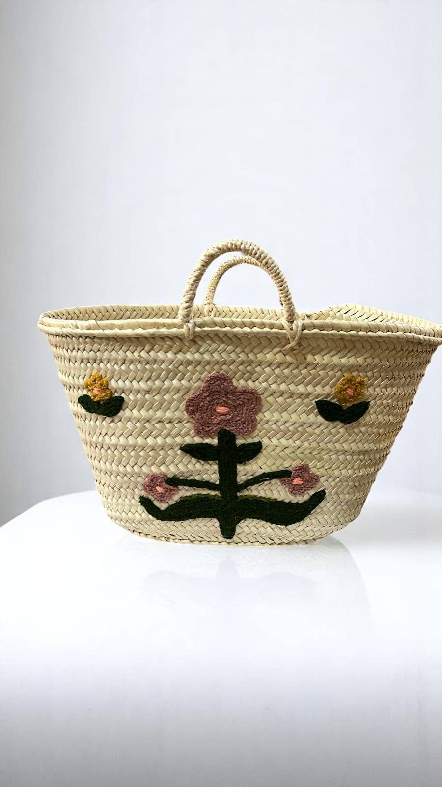 Panier artisanal marocain en paille avec motif de tomates