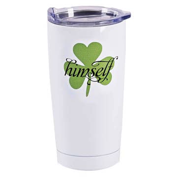 Ce gobelet de voyage sur le thème irlandais est orné d'un trèfle et du mot « elle-même ». Gobelet en acier inoxydable 18/8 à l'intérieur et à l'extérieur ; finition blanche à l'extérieur. Peut contenir jusqu'à 20 onces ; garde les boissons chaudes chaudes et froides froides pendant des heures. Le couvercle transparent comprend un joint d'étanchéité en silicone et un mécanisme coulissant pour couvrir ou découvrir facilement l'ouverture de la boisson. Pour entretenir le gobelet, lavez-le uniquement à la main et ne l'utilisez pas au micro-ondes.