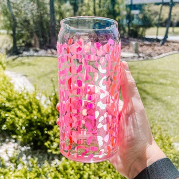 Tasse en verre rose léopard 16 oz