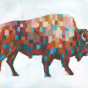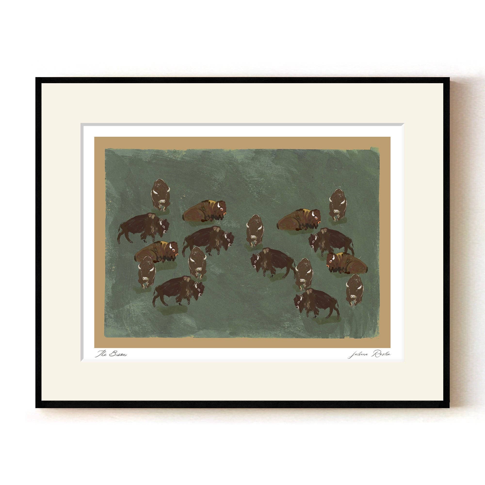 Impression de bison 8x10 réalisée à 100 % sans acide. Il s'agit d'une reproduction d'art de l'illustration originale. L'impression est livrée non encadrée, emballée avec un carton de support dans une pochette transparente de protection.