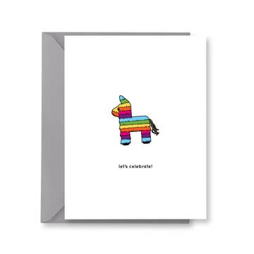 « Allons nous faire écraser ! » carte d'anniversaire piñata - Carte de notes de 4,25 po x 5,5 po - Risographe imprimé avec de l'encre à base de soja - Imprimé sur du papier cartonné recyclé - Enveloppe en kraft recyclé - L'intérieur est vide - Emballé dans un étui en cellophane transparent - Fabriqué aux États-Unis - Fait main - Imprimé dans le studio Smarty Pants à Knoxville, TN