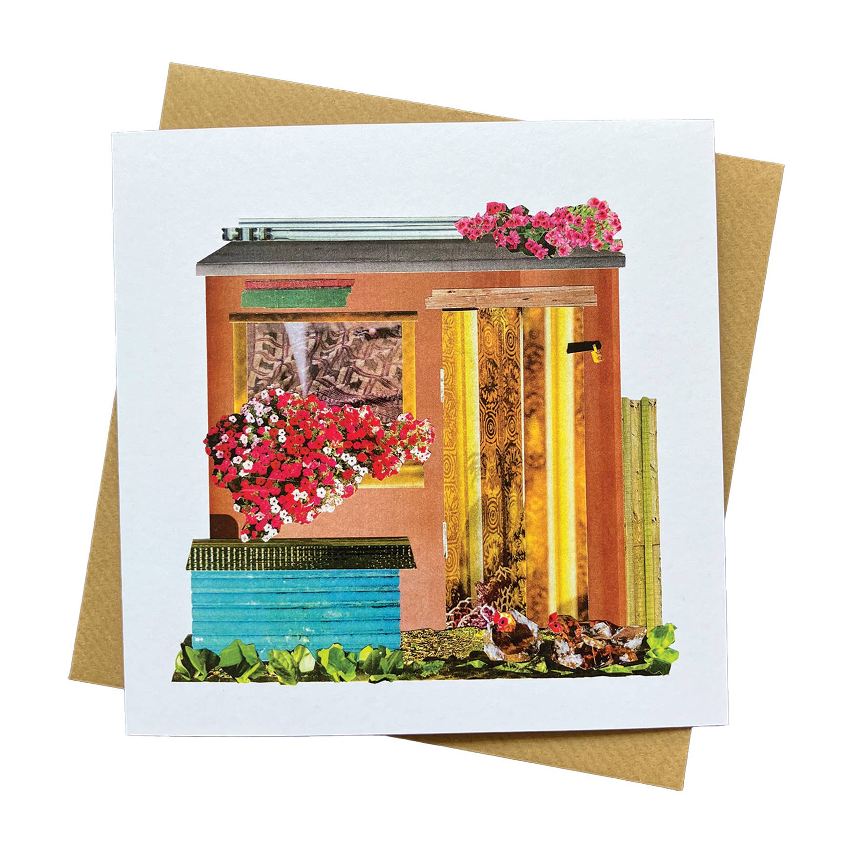 Collage de papier recyclé d'une tranche de gâteau éponge ange fait maison imprimé sur une carte de 350 g/m² approuvée FSC, accompagnée d'une enveloppe en papier recyclé nervuré marron. carte 14,8 x 14,8 cm enveloppe 15,5 x 15,5 cm La carte est vierge à l'intérieur. Toutes les cartes sont livrées "nues" pour éviter les déchets excessifs.