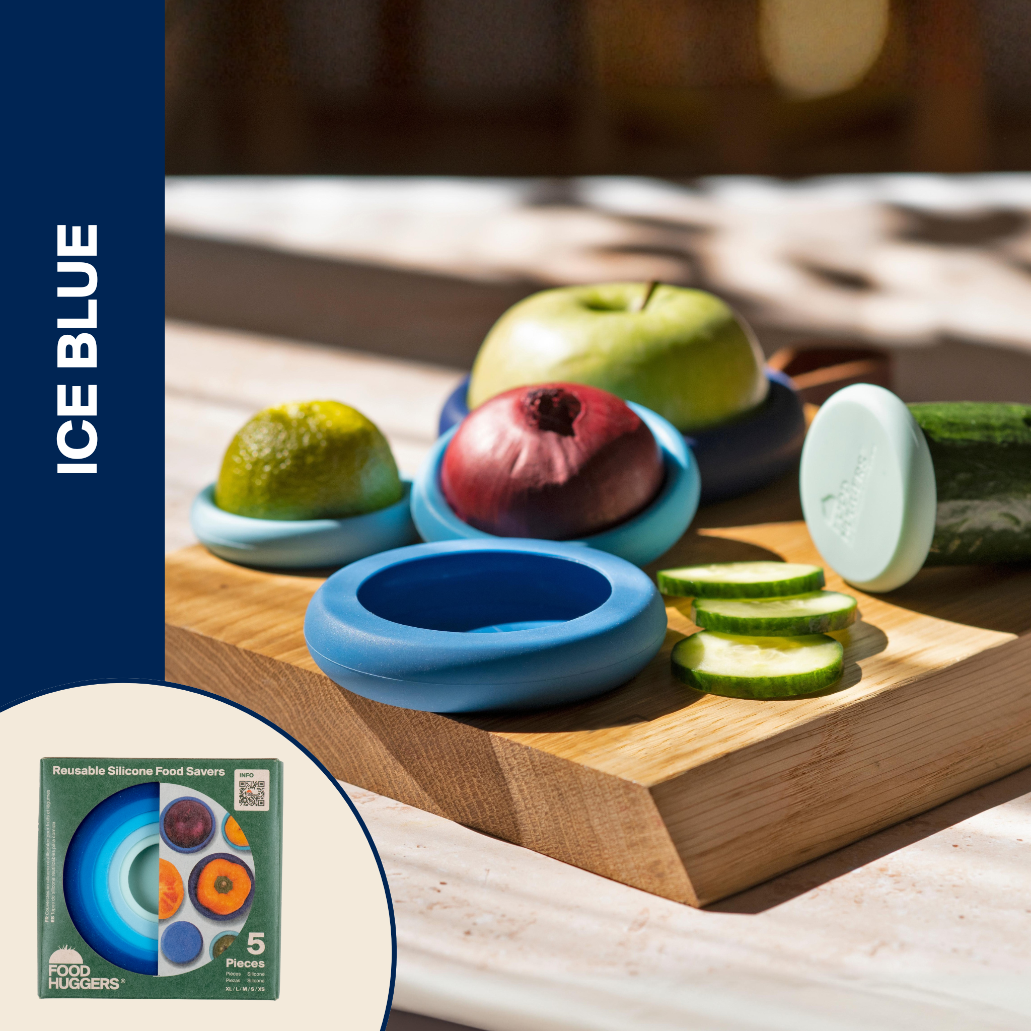 Ensemble de cinq économiseurs d'aliments en silicone réutilisables qui aident à garder les fruits et légumes frais plus longtemps tout en réduisant le gaspillage alimentaire. Ce set de cinq comprend toutes les tailles de Food Huggers—Mini, Petit, Moyen, Grand et Très Grand—conçues pour se sceller directement sur les produits coupés, couvrir les bocaux, les boîtes ouvertes et les petits contenants, et remplacer le film plastique par une alternative réutilisable. Ces économiseurs d'aliments en silicone flexibles s'étirent pour s'adapter aux produits et contenants courants, créant un joint hermétique qui soutient la fraîcheur et aide à réduire le gaspillage. Une solution simple pour un stockage alimentaire organisé et réutilisable. Les Food Huggers s'emboîtent parfaitement pour un rangement compact et sont lavables au lave-vaisselle pour un usage quotidien. Fabriqués en silicone sans BPA, ils sont conçus pour un usage répété dans une cuisine durable. Ice Blue offre une palette de couleurs propre et moderne avec une grande polyvalence commerciale. Créé par des fondatrices en mission pour mettre fin au gaspillage alimentaire, Food Huggers est une entreprise certifiée B Corp car faire le bien est une bonne affaire. Détails de gros : Ensemble de 5 par unité (Mini, S, M, L, XL). 6 ensembles par carton intérieur.