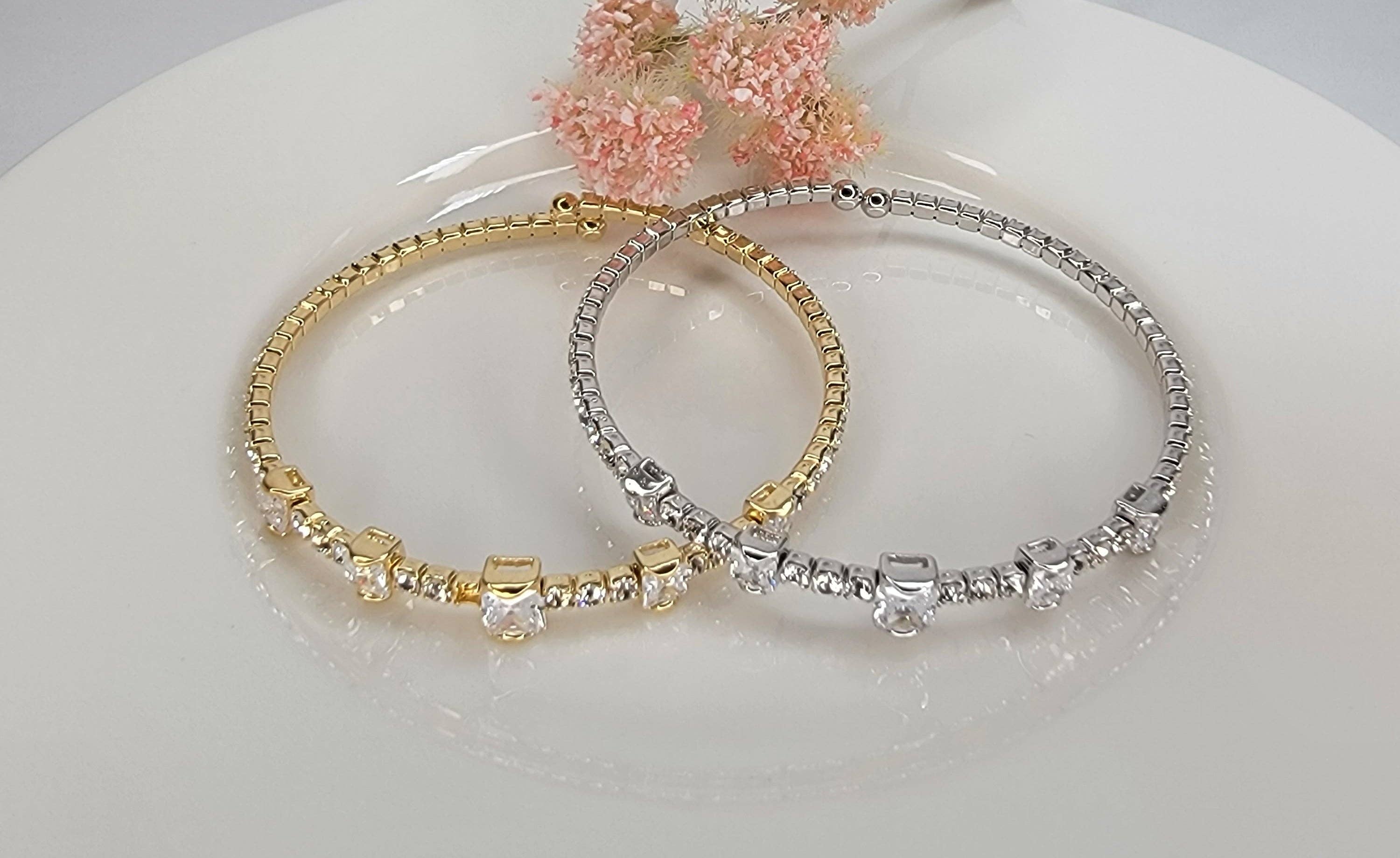 Bracelet jonc en forme de deux T, rond, entouré de pierres précieuses -Bracelet cadeau élégant -Bracelet en or argenté CZ -Bracelet à jonc Découvrez la quintessence de l'élégance avec nos boucles d'oreilles stylées de haute qualité, fabriquées méticuleusement. Rayonnantes de sophistication, ces boucles d'oreilles présentent un design impeccable qui allie harmonieusement esthétique moderne et charme intemporel. Chaque détail respire le luxe, de la finition lustrée à l'artisanat complexe, qui rehausse n'importe quel ensemble sans effort. Avec un équilibre parfait entre grâce et glamour, ces boucles d'oreilles sont une pièce maîtresse qui inspire confiance et raffinement. Ornez-vous de ces bijoux exquis pour attirer l'attention et accentuer votre beauté innée. Faites l'expérience d'une élégance inégalée à chaque fois que vous les portez, car ces boucles d'oreilles deviendront un ajout précieux à votre collection, symbolisant un goût impeccable et un savoir-faire inégalé.