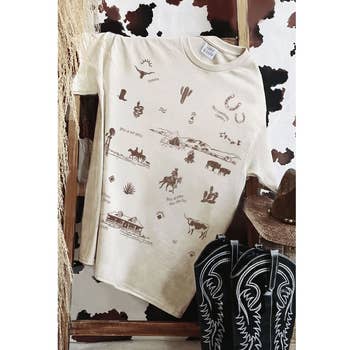T-shirt graphique crème "Cutting Horses" (couleurs confort) en vente B2B