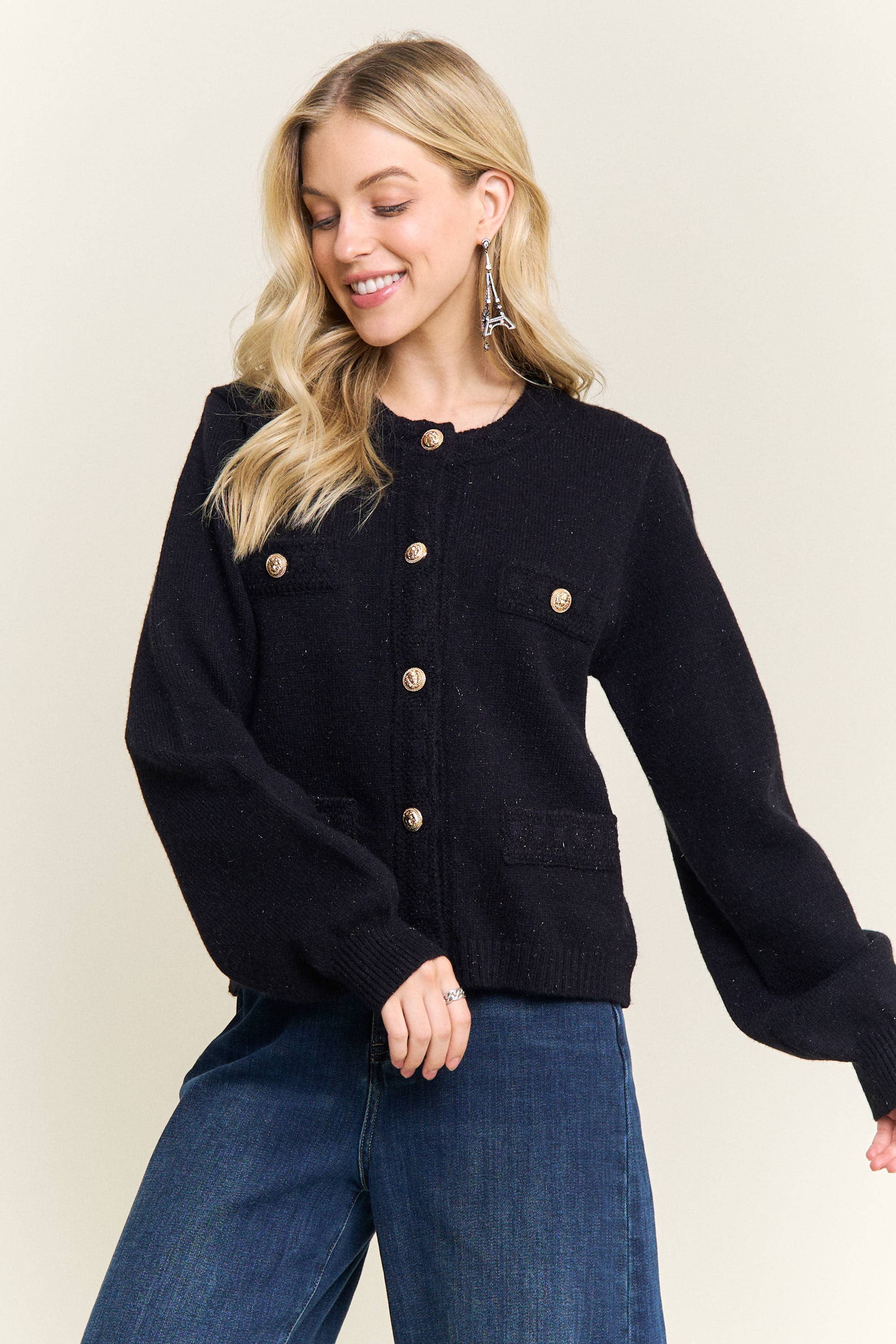 CARDIGAN EN MAILLE AVEC BOUTONS ET SURPIQÛRES CONTRASTÉES - en réapprovisionnement