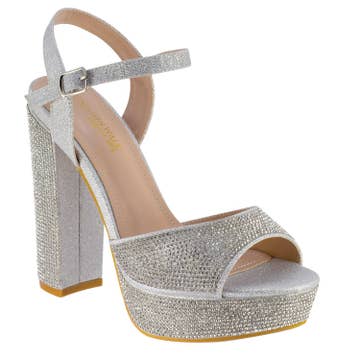 Sandales à talons carrés à bout ouvert à bretelles scintillantes pour femmes en vente B2B