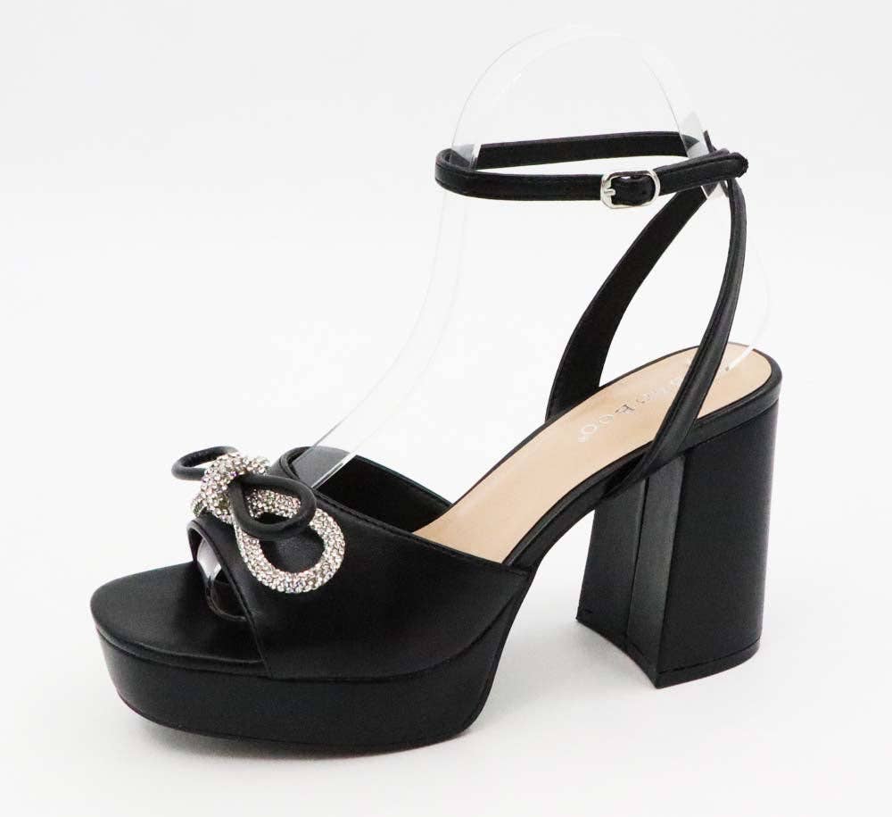 Talon bloc de 7 po de haut, sangle ajustable à la cheville, corps scintillant, détail tressé tendance, sangle à paillettes avec crochet, bout ouvert, talon épais, sandale à plateforme.