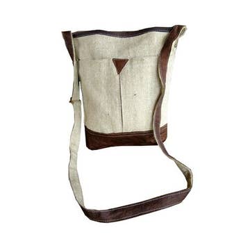 SAC À BANDOULIÈRE EN TOILE LIVE BY THE SUN M-1825 (cuir original)