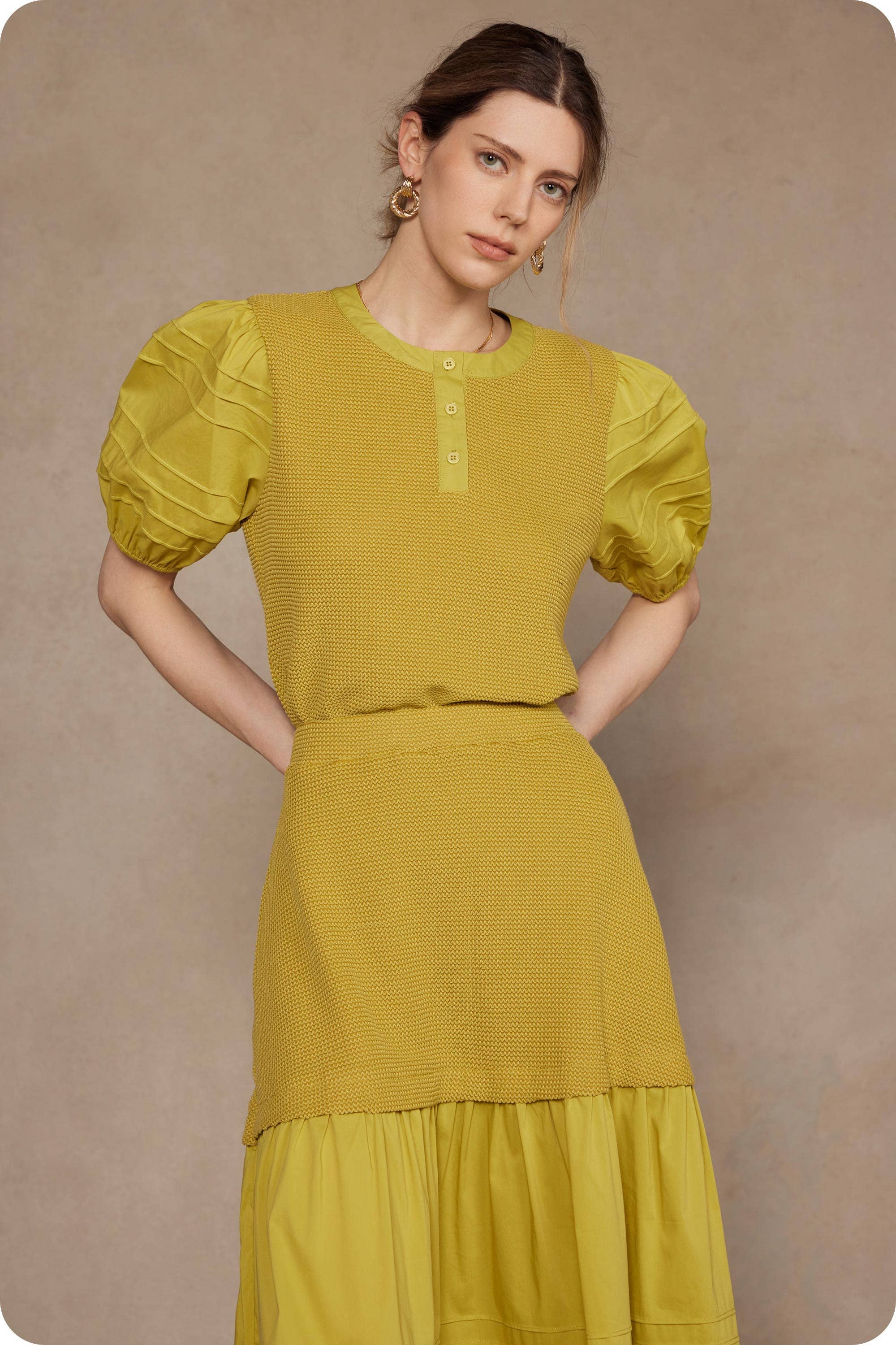 Embellissez-vous avec la blouse sœur de Celine Top. Il présente des caractéristiques similaires, comme ses manches bouffantes, ses épaules drapées et son corsage de coupe classique. Ce haut comporte quelques détails supplémentaires pour un peu de piquant. L'encolure arrondie est ornée de volants et les manches à revers smockées. Un trou de serrure situé à l'arrière de la nuque permet un accès facile. Portez-le dans ou hors de votre pantalon préféré et associez-le à des chaussures plates ou à des talons à lanières pour un look chic. - Trou de serrure - Manches drapées - Coupe classique - Bordure volantée - Disponible en 7 couleurs Taille + coupe - Le mannequin mesure 1,80 m et porte la taille XS - Mesures prises à partir de la taille S - Poitrine : 18 pouces - Longueur : 24 3/4 po