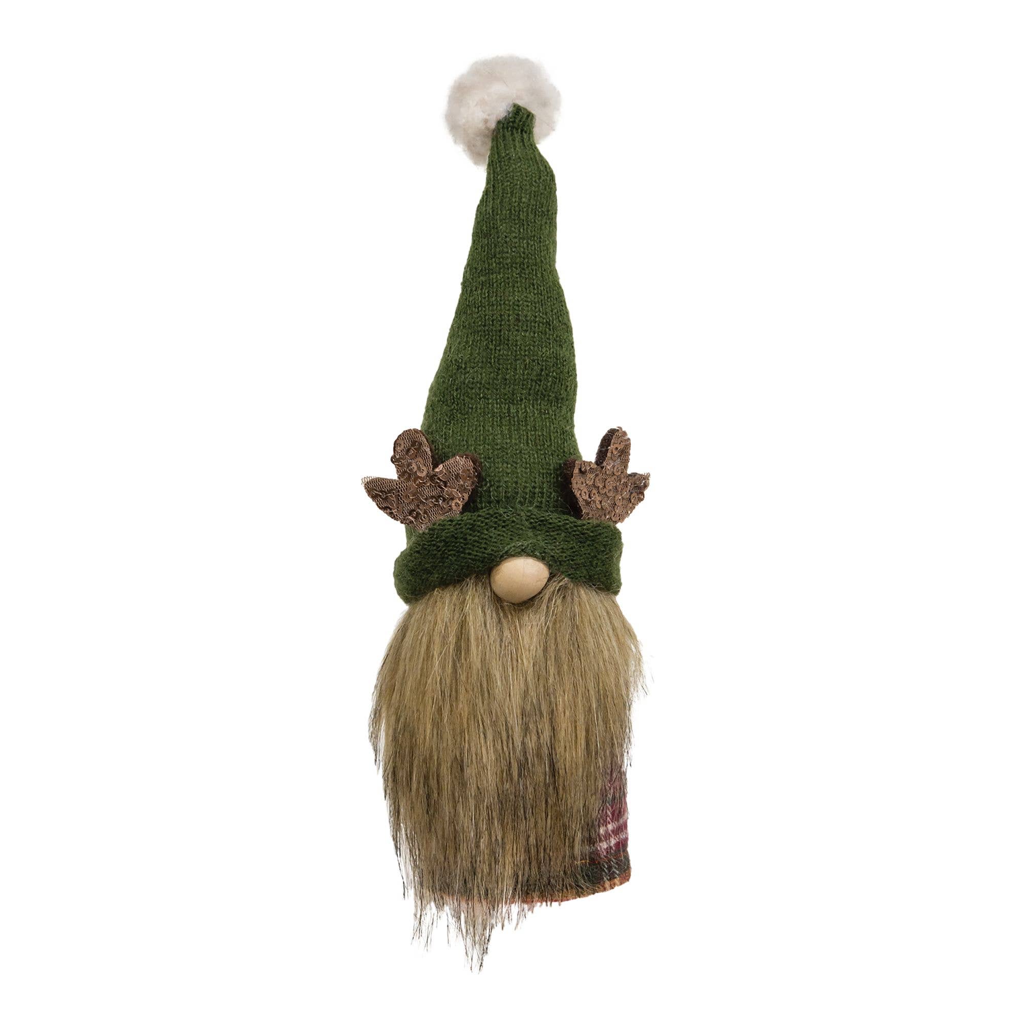 Gnome de Noël à jambes pendantes en plaid rouge est un gnome en peluche lesté de sable avec de longues jambes pendantes. Le gnome porte un chapeau en plaid rouge avec fil et bordure en fourrure et il a un nez rond et une barbe blanche duveteuse pour un look de Père Noël. Le gnome a de longues jambes en tissu rayé rouge et blanc avec des bottines en feutre marron et des poignets en fourrure et il a fière allure assis sur une chaise, un tabouret ou un rehausseur. Mesure 10" de haut (jambes de 6,5") par 5" de large par 4,5" de profondeur.