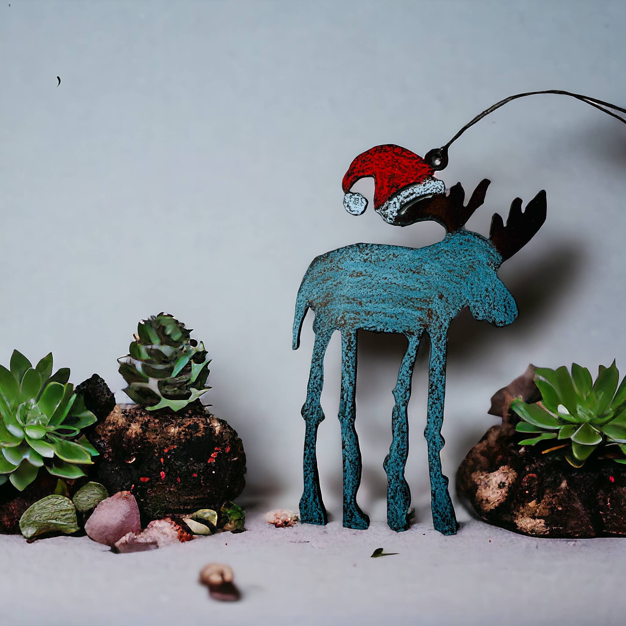 Grand ornement en métal. Ces ornements peuvent être accrochés à un manteau en bois ou à une couronne. Superbe décoration de Noël. Nous dessinons, découpons et peignons nos ornements à la main. Rouille à l'arrière et revêtement en polyuréthane à l'avant et à l'arrière. Nous sommes fabriqués aux États-Unis et utilisons des métaux recyclés. Mots-clés : décoration de Noël, ornements de Noël, décorations de Noël, sapin de Noël, ornements en métal, étiquette-cadeau décorative