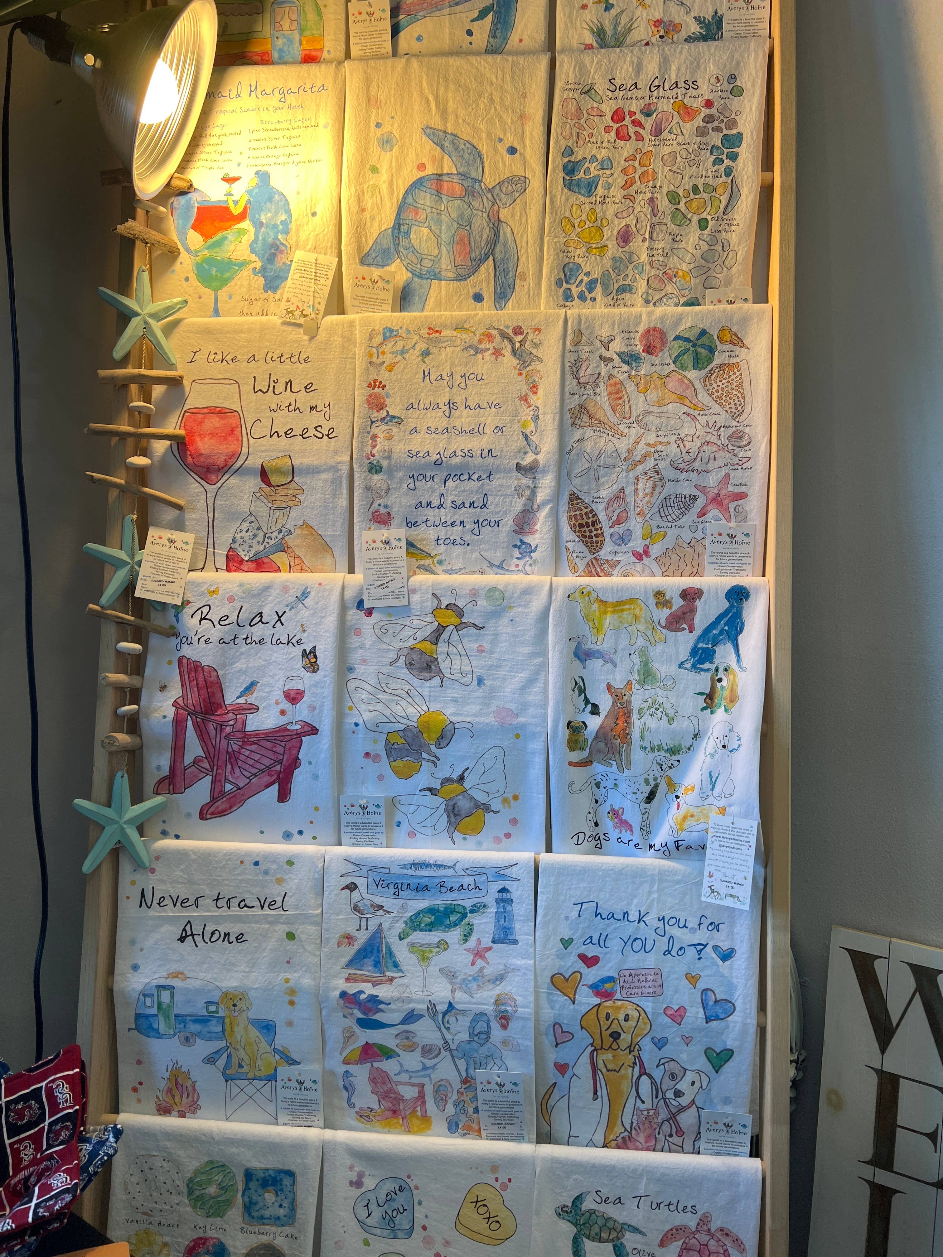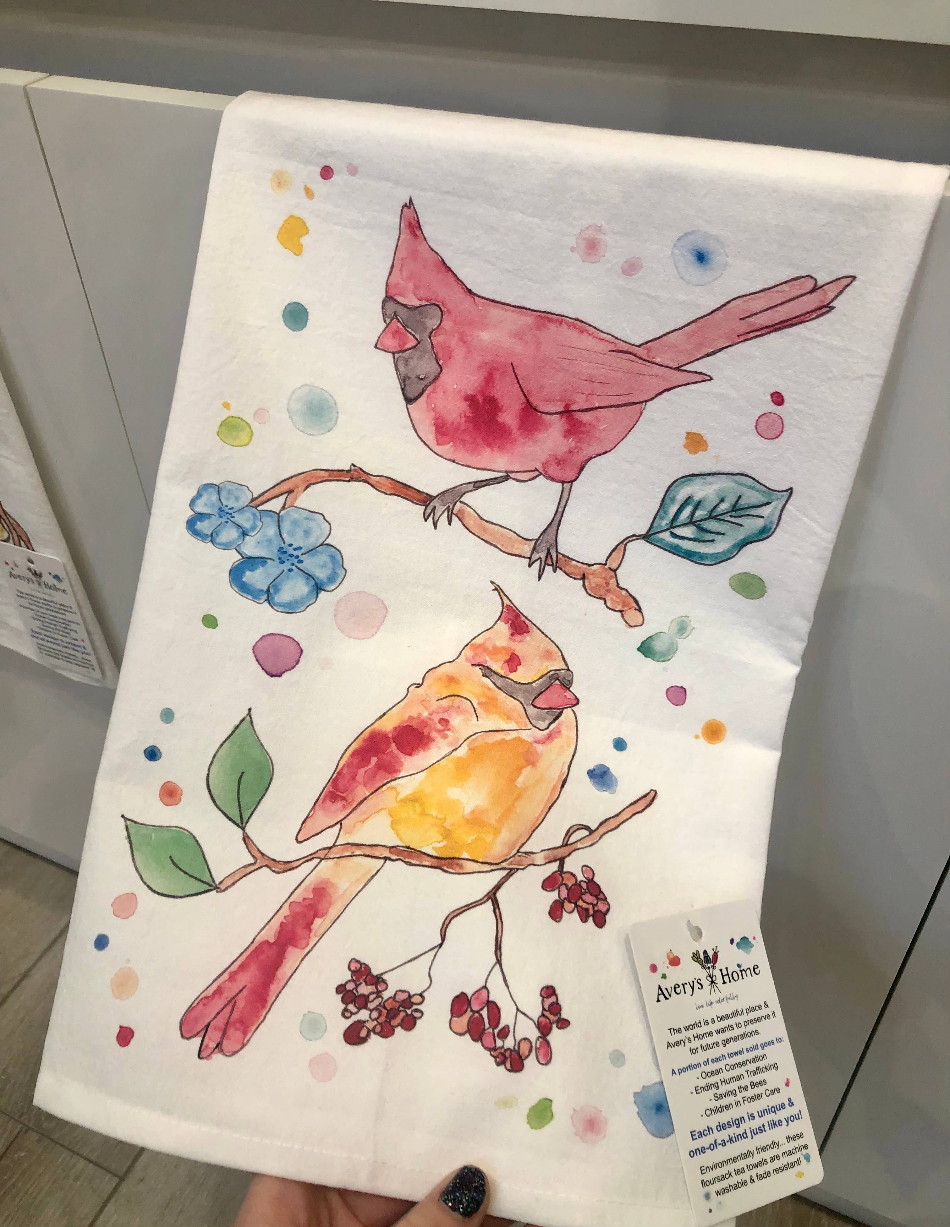Ces torchons de cuisine pour décoration intérieure sont lourds, très absorbants, durables, conçus pour être utilisés et lavables en machine ! Les serviettes sont imprimées via la technologie Direct to Garment (DTG). Il n'y a donc pas d'encre rugueuse ni de texture vinylique. Les torchons Avery's Home Flour Sack sont vendus dans les 50 États, au Canada, en Europe et en Australie. Ces torchons sont l'un des produits les plus vendus de tous mes détaillants et constituent les cadeaux et les souvenirs parfaits pour toutes les occasions. Ces motifs d'animaux et d'animaux de compagnie décoratifs et fantaisistes fabriqués à la main et peints à la main illumineront à coup sûr chaque espace de vie ! * Taille : 27 « x 27" * 100 % coton, d'origine mondiale * Couleur : blanc * Ourlé sur les quatre côtés * Non pelucheux * Imprimé aux États-Unis par ADDLE InK Ils arrivent pliés et étiquetés, prêts à être exposés sur un comptoir, une échelle ou dans un casier ! Ils sont respectueux de l'environnement et les magasins ont découvert que les clients adorent le toucher et la qualité des serviettes. Je te promets que tu ne seras pas déçue ! CODE : FSTT_TD05