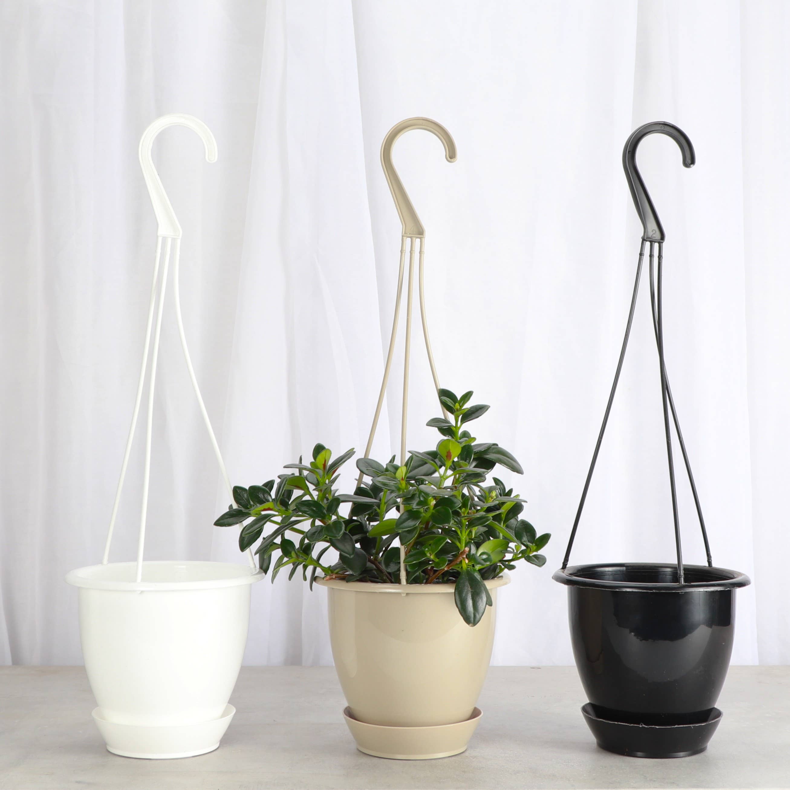 Grandissez dans l'espace vertical ! Ce pot suspendu élégant est le moyen idéal pour élever vos plantes d'intérieur ! Convient à une plante de 4 pouces de diamètre. Comprend une soucoupe amovible. Fabriqué en plastique avec une finition lisse et brillante. Le support est amovible. Choisissez parmi 3 couleurs disponibles. Plantes non incluses. Veuillez nous contacter dans les 3 jours suivant la réception en cas de problème. REMARQUE : Les dommages survenant après le déballage du produit ne sont PAS couverts par la politique de dommages de Faire.