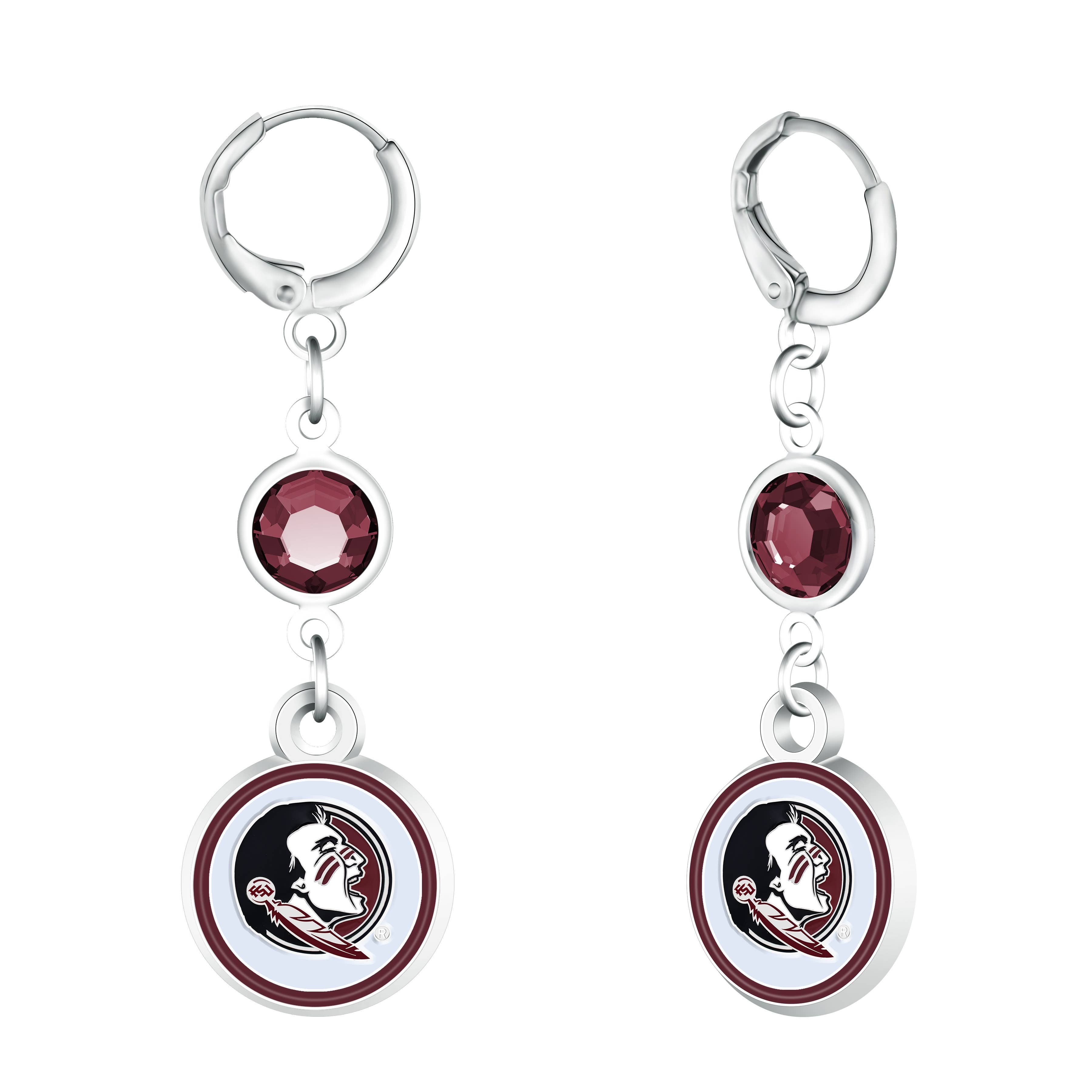 Boucles d'oreilles à tige en métal argenté avec grenat et émail doré avec le logo de l'État de Floride. Il s'agit d'un produit sous licence officielle.