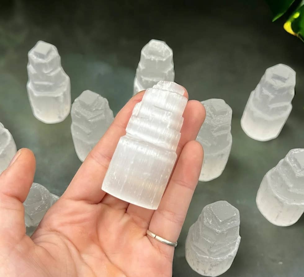 Spiral Selenite pour Lightbox | Selenite Spiral Tower en vente B2B