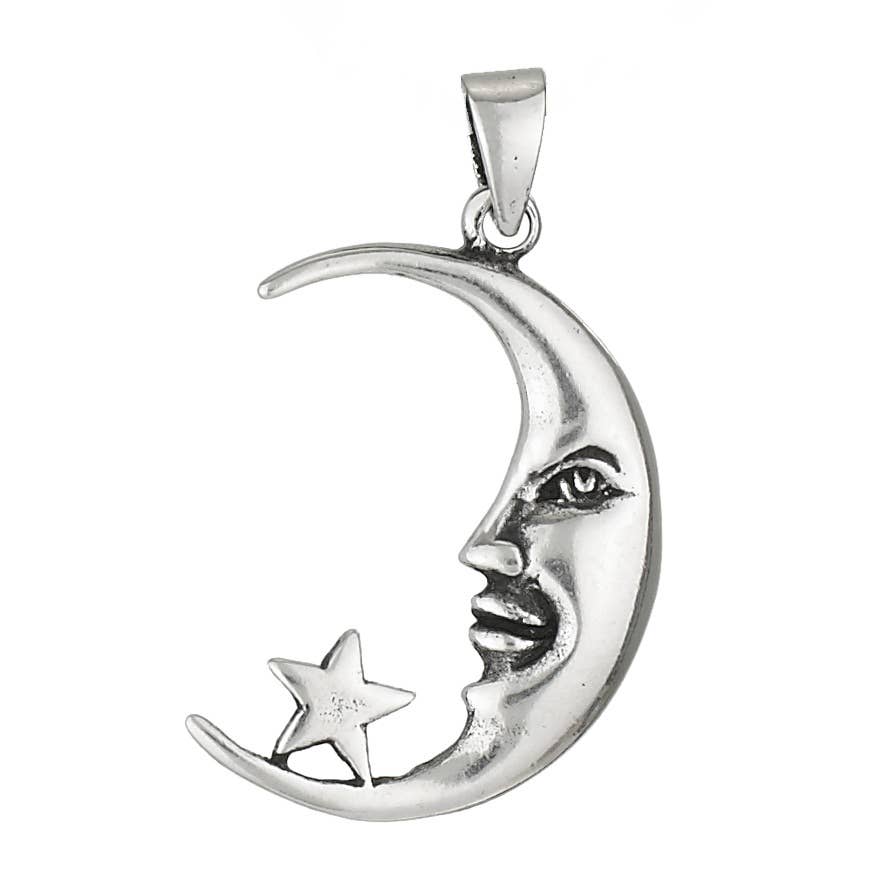 Pendentif lune en argent sterling et ambre cognac