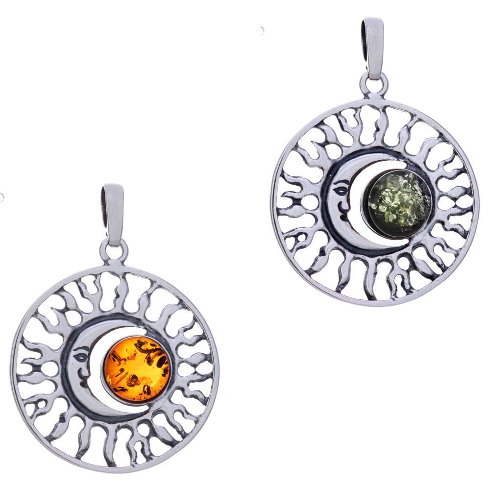 Pendentif lune en argent sterling et ambre cognac en vente B2B