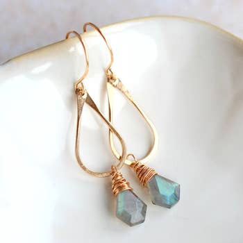 Boucles d'oreilles en labradorite enroulées de fil en vente B2B
