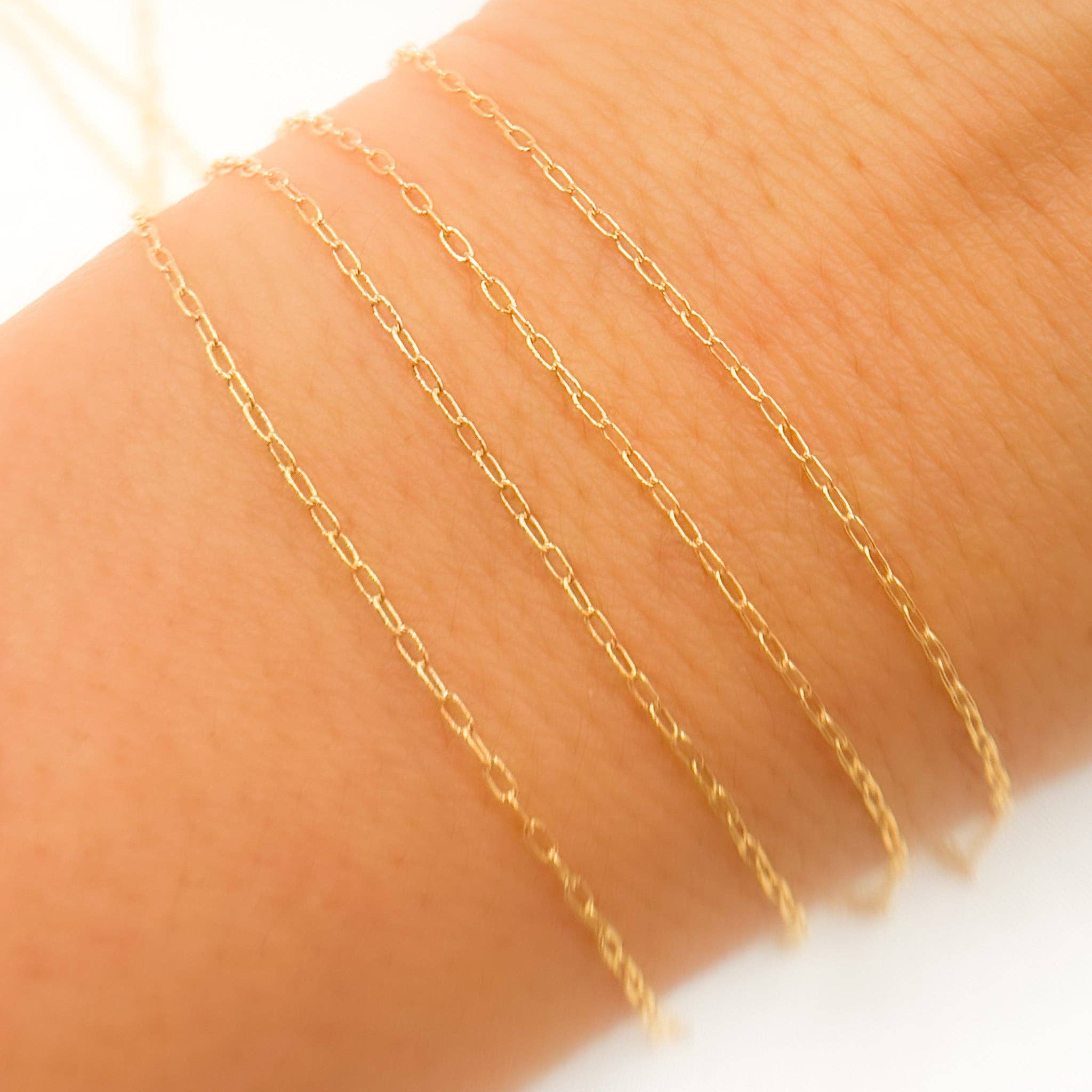 J'adore les chaînes que j'ai commandées. Bien que je me moque de moi-même parce que j'ai commandé les chaînes les plus fines et délicates. Je n'ai pas fait attention à l'épaisseur des chaînes. Mais ce n'est pas grave. Elles sont vraiment adorables. Excellente qualité. Ce sont de vraies chaînes. Je vais les vendre rapidement et en acheter d'autres chez Olive and Chain.