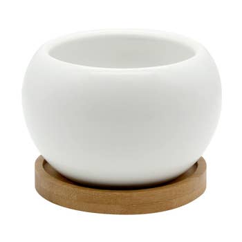 Petit pot de fleur en céramique fait main avec soucoupe pour intérieur