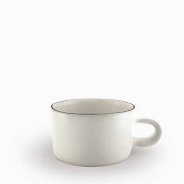 - Tasse à café/thé en grès blanc - Glaçure blanche/crème brillante avec des notes de miel - Environ 3 pouces x 3 pouces - Sans danger pour les aliments - Étagère supérieure du lave-vaisselle/lavage à la main recommandé