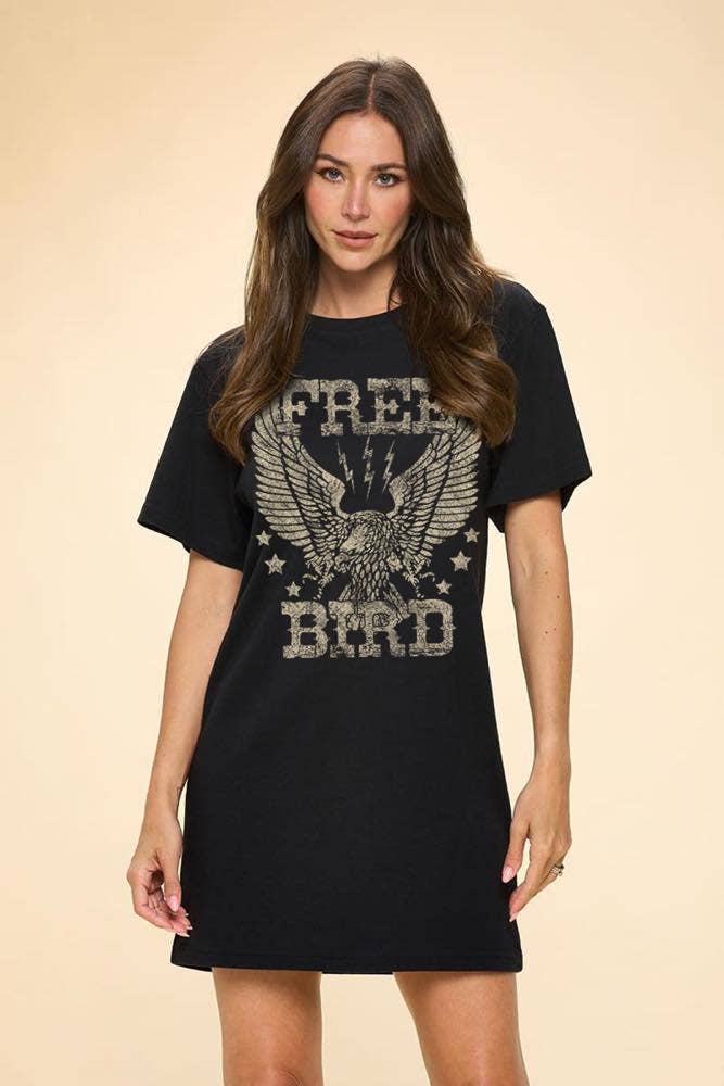 T-shirt de coupe pour petit ami délavé Free Bird Eagle Vintage Graphic S/S en vente B2B
