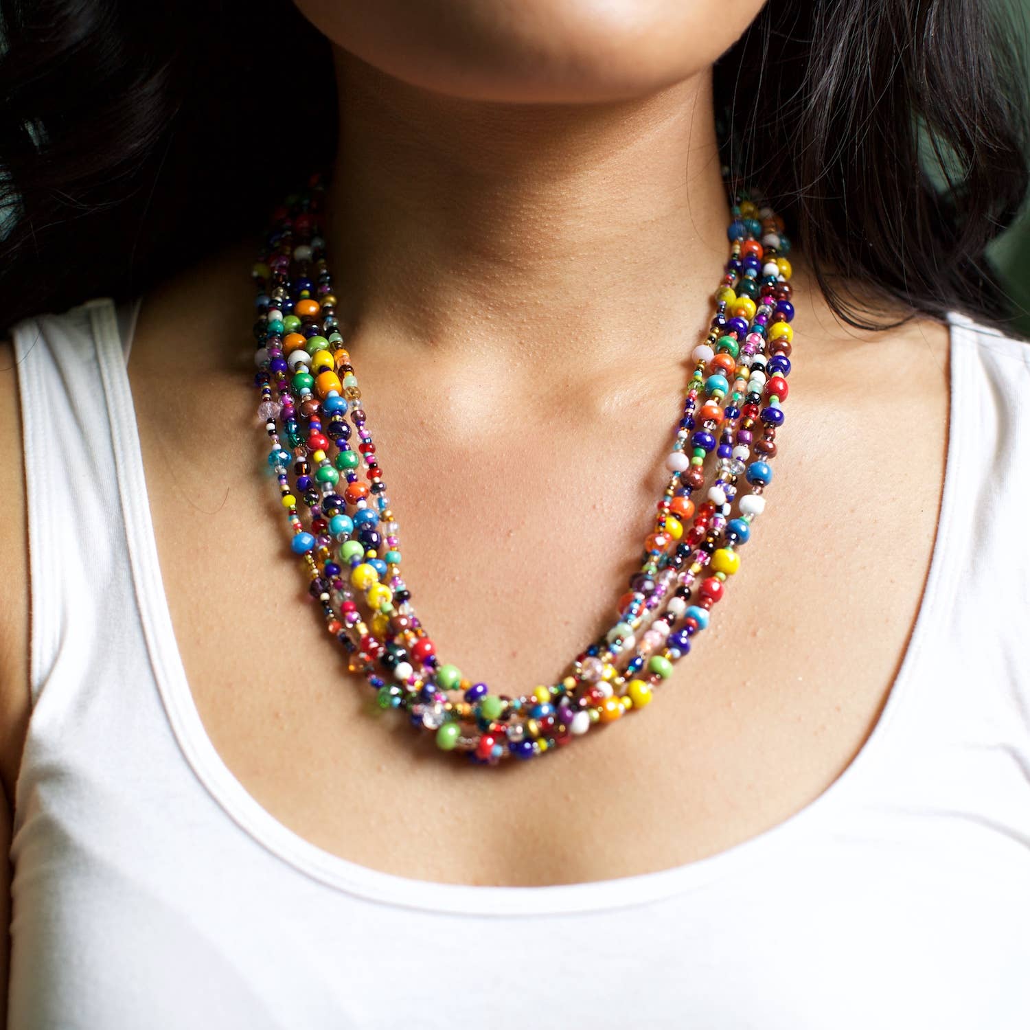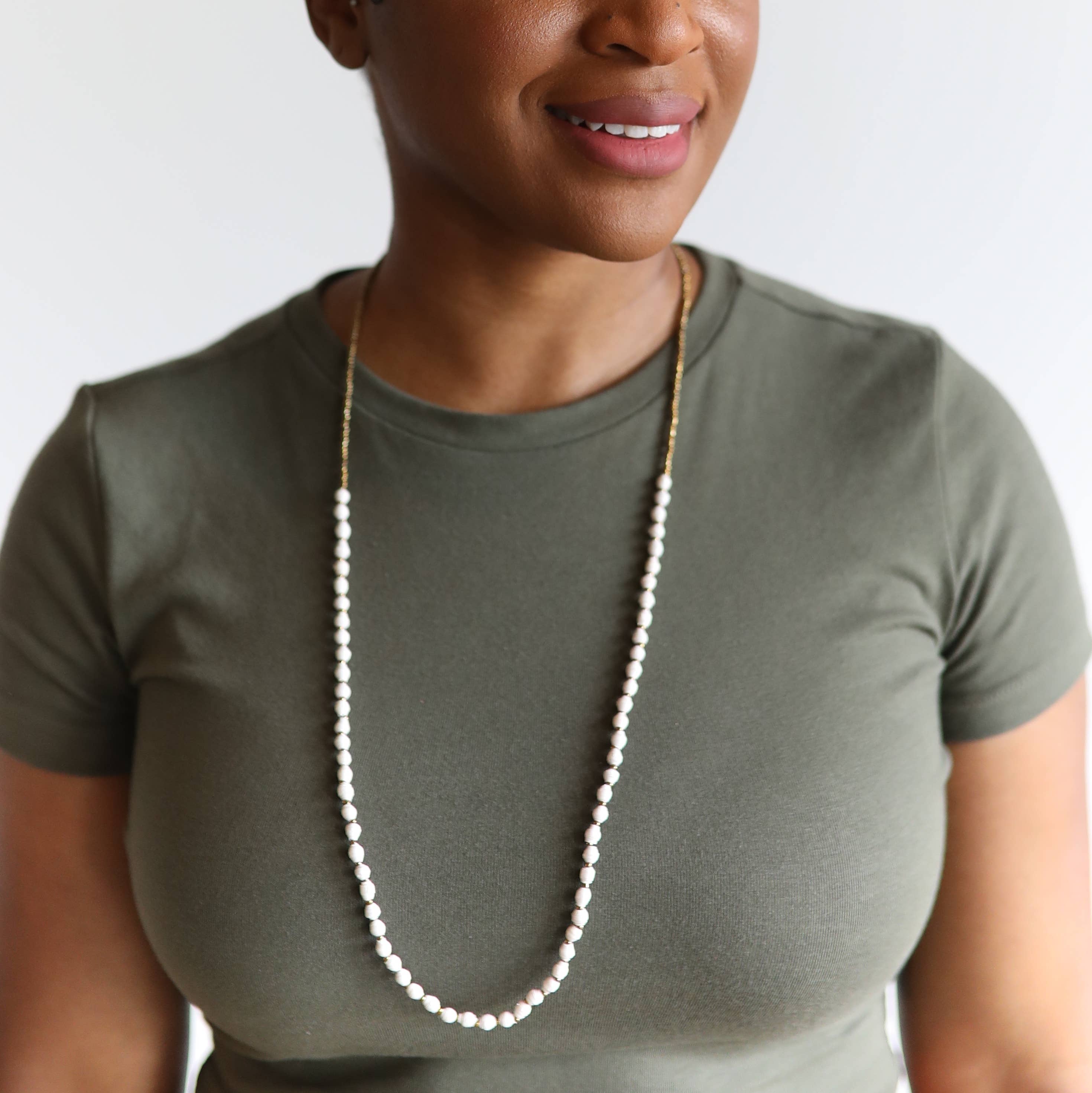 Une touche de couleur. Un mélange de formes. Beaucoup de fun. Portez-les longtemps. Tournez-les et criez-les et enroulez-les 2, 3 ou même 4 fois. Soyez au centre de la conversation en mettant fièrement en valeur le raffinement des bijoux en papier recyclé. D'une longueur d'environ 60 pouces, ce collier extra long est fabriqué à partir de perles en papier recyclé aux couleurs vives.