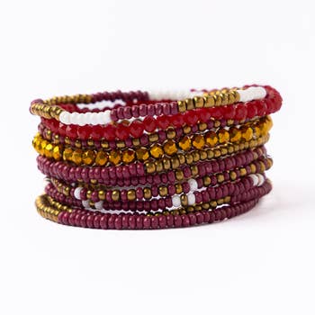 Bracelets en perles de verre népalaises rouges et dorées en vente B2B