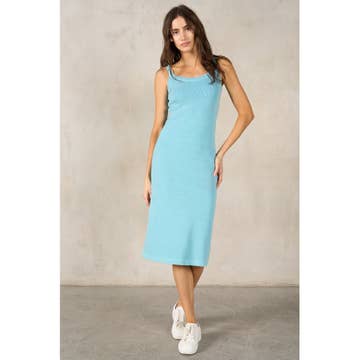 Robe mi-longue à ourlet noué sur le devant de Nurode, grande taille, à rayures océaniques