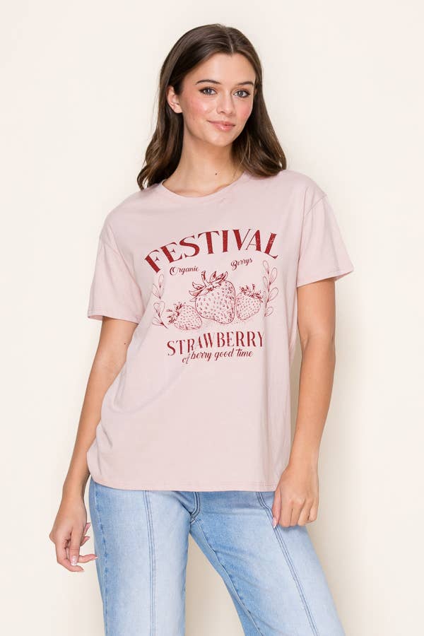 Un best-seller estival ! 🍓 Cultivez et récoltez la bonté du Fruit de l'Esprit 🫐🍒 Imprimé sur un t-shirt Comfort Color 100 % coton, coloris blanc cassé. Devant : motif de fraises en bas à gauche Dos : grand graphique couvrant le dos Collection été / Collection Fruits / Graphismes marché fermier été