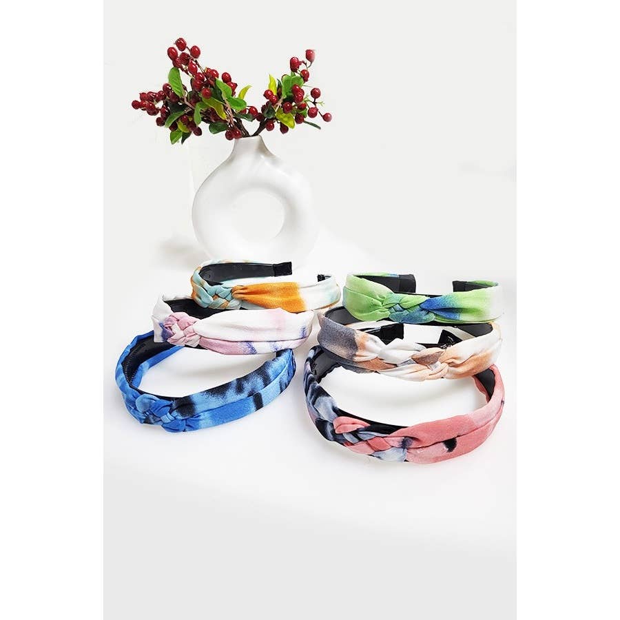 Bandeaux structurés avec nœud sur le devant et turban torsadé délavé Couleurs assorties (12 à 3 unités par couleur)