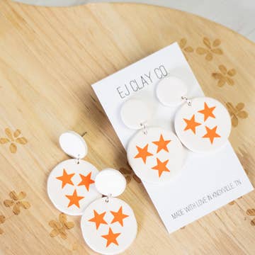 Aidez à incarner votre état préféré avec nos boucles d'oreilles en forme de trois étoiles ! •Léger avec le même design à l'avant et à l'arrière •Découpé au laser dans du bouleau de la Baltique de 1/8 po •La quincaillerie est exempte de nickel et de plomb •Conçu à Louisville, dans le Kentucky. Fabriqué aux États-Unis • Comprend une paire de boucles d'oreilles • Le design en bois mesure 1 po de diamètre.