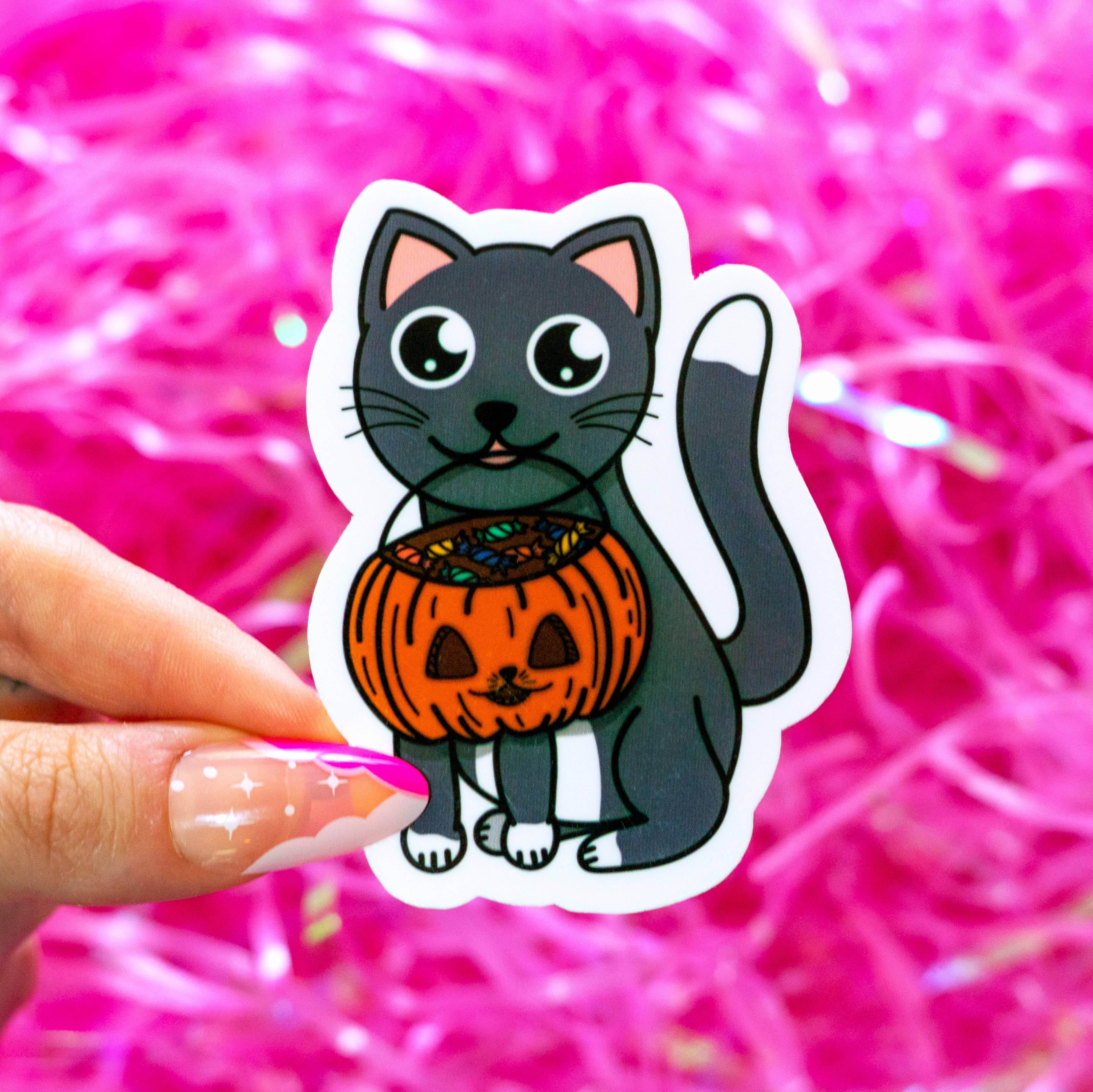 Autocollant Chat Citrouille d'Halloween | Vinyle Laminé en vente B2B